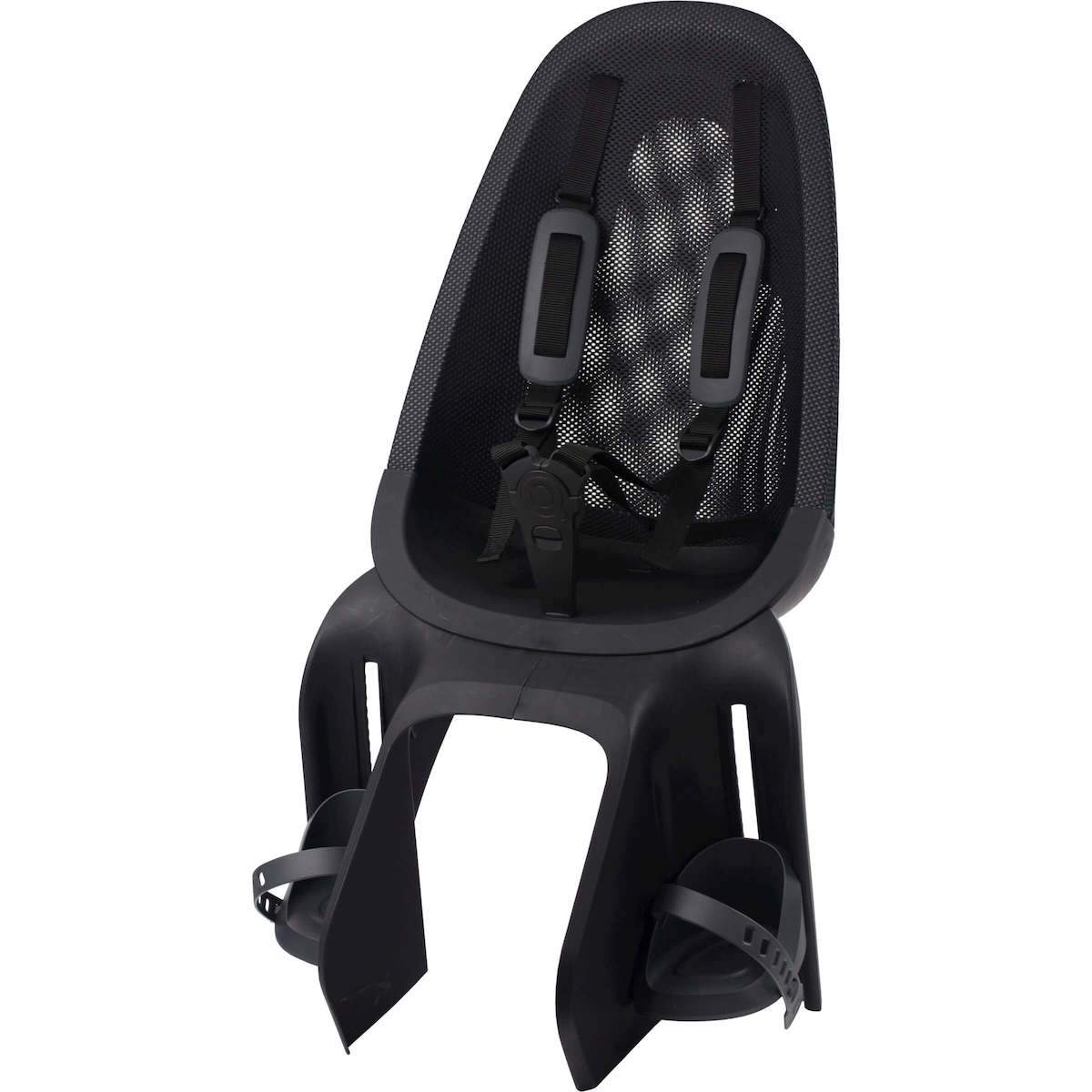 De rugleuning is bespannen met mesh, een slijtvast en ventilerend materiaal. Deze stof wordt ook gebruikt in rugzakken en bureaustoelen. Ergonomisch verantwoord en superlicht: het zitje weegt slechts 2,5 kilogram.